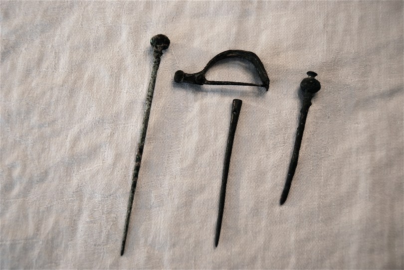 Bronze pins (Roman) and fibula (brooch). The fibula is Aucissa type, common in Gaul and central Anatolia (Galatia, so has Celtic associations. October 6, 2015 3872 × 2592 Bronze pins (Roman) and fibula (brooch). The fibula is Aucissa type, common in Gaul and central Anatolia (Galatia, so has Celtic associations.